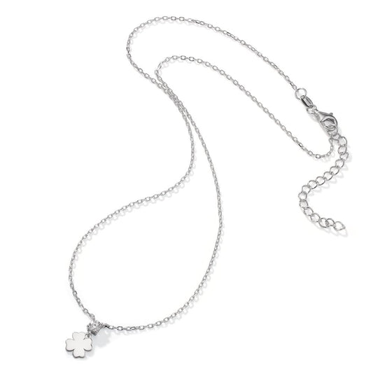 Collier Argent Zircone Rhodié Feuille de Trèfle 40-45 cm