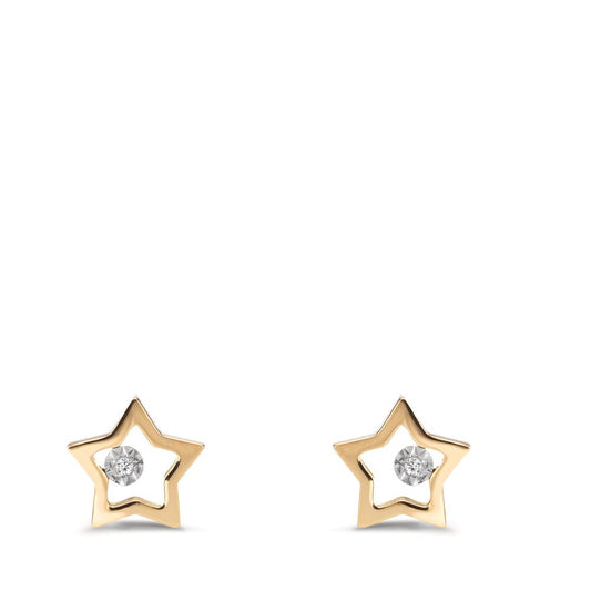 Clous d'oreilles Or jaune 18K Diamant 0.01 ct, 2 Pierres, w-si Étoile Ø7.5 mm