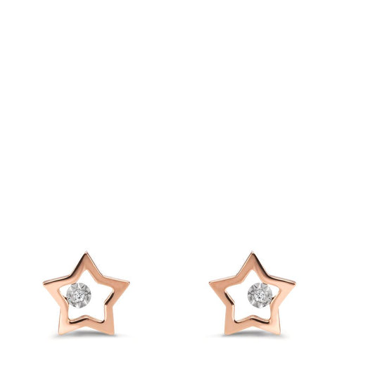 Clous d'oreilles Or rouge 18K Diamant 0.01 ct, 2 Pierres, w-si Étoile Ø7.5 mm