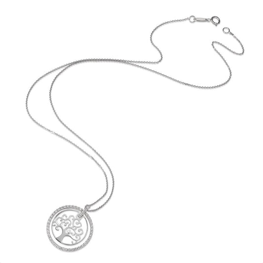 Collier Or blanc 18K Zircone Arbre de la vie 42 cm Ø18 mm
