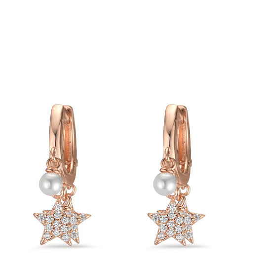 Créoles à charnières Argent Zircone rosé Plaqué or [shining Pearls] blanc, 6 Perles Étoile