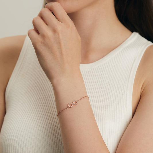 Bracelet Argent Zircone rosé Plaqué or Infini 16-19 cm