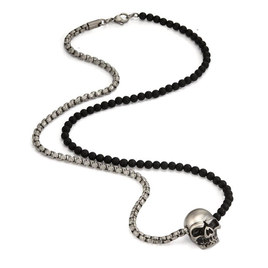 Collier Acier inoxydable Agate Tête de Mort 60 cm Ø4 mm