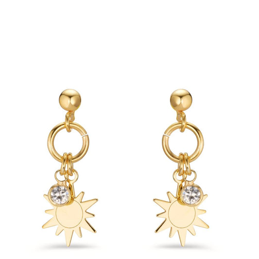 Pendant d'oreilles Argent Zircone 2 Pierres jaune Plaqué or Soleil