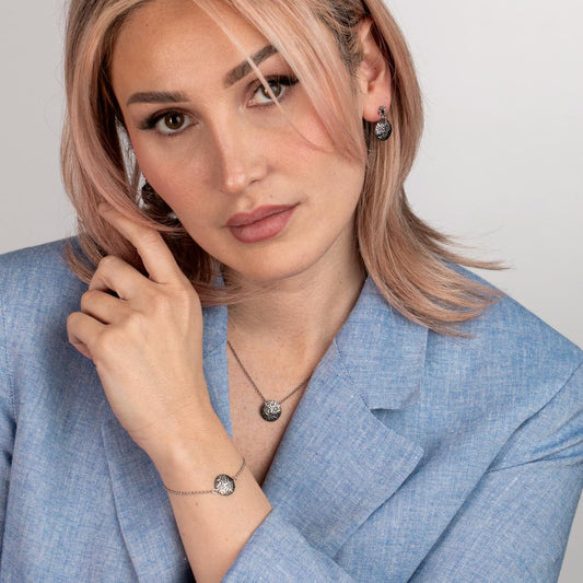 Pendant d'oreilles Argent noir Rhodié Edelweiss Ø13 mm