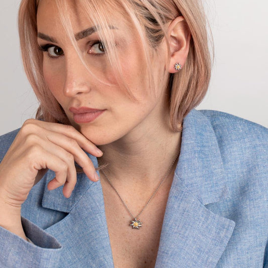 Pendant d'oreilles Argent bicolore Rhodié Edelweiss Ø13 mm