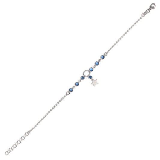 Bracciale Argento Cristallo blu, 7 pietra rodiato Stella 17-20 cm