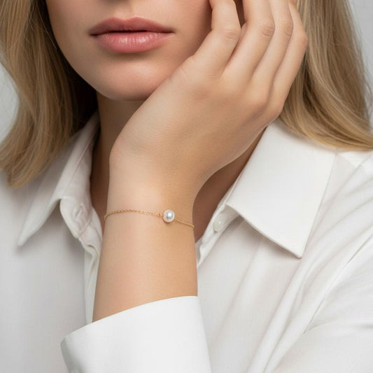 Bracciale Argento dorato Perla coltivata d'acqua dolce bianco, 5 Perla, 3 mm