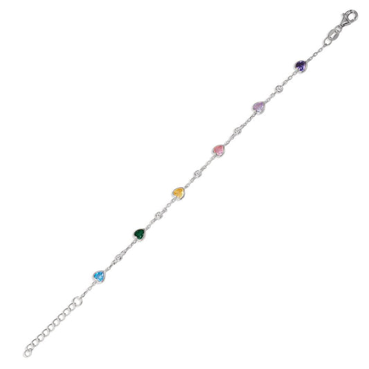 Bracciale Argento Zirconia colorato rodiato Cuore 14-16 cm