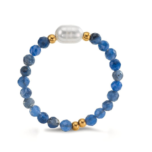 Anello Acciaio inossidabile Sodalite blu, 2 mm giallo rivestimento IP Perla coltivata d'acqua dolce, 3.5 mm
