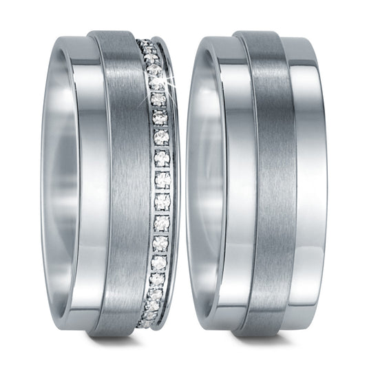 Anello Acciaio inossidabile Zirconia bianco, [rund]