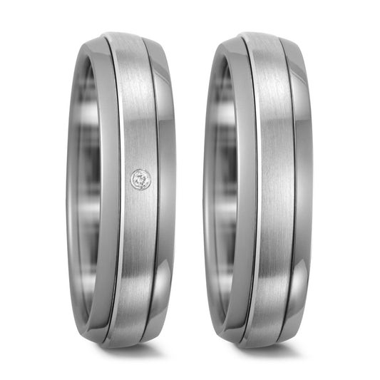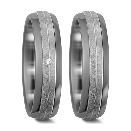 Anello Titanio, Oro bianco 585/14 kt Diamante 0.01 ct, w-pi1