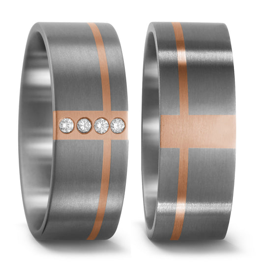 Anello Titanio, Oro rosso 750/18 carati Diamante 0.05 ct, w-si