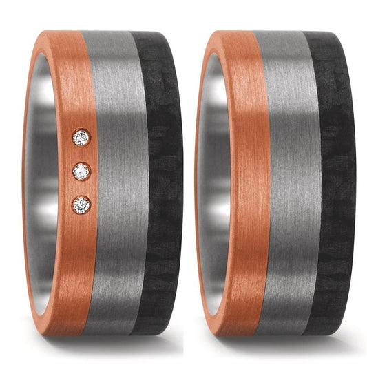 Anello Titanio, Oro rosso 750/18 carati, Carbonio Diamante 0.03 ct, w-si