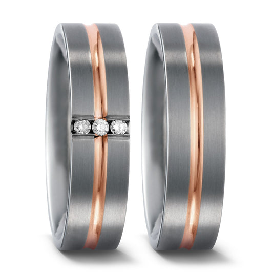 Anello Titanio, Oro rosso 750/18 carati Diamante bianco, 0.03 ct, w-si