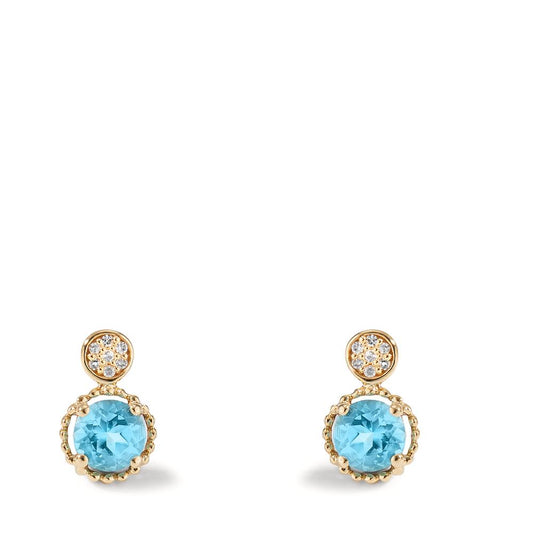 Orecchini a bottone Oro giallo 585/14 kt Topazio blu, 2 pietra, Diamante 0.02 ct, 14 pietra, w-si Ø5.5 mm