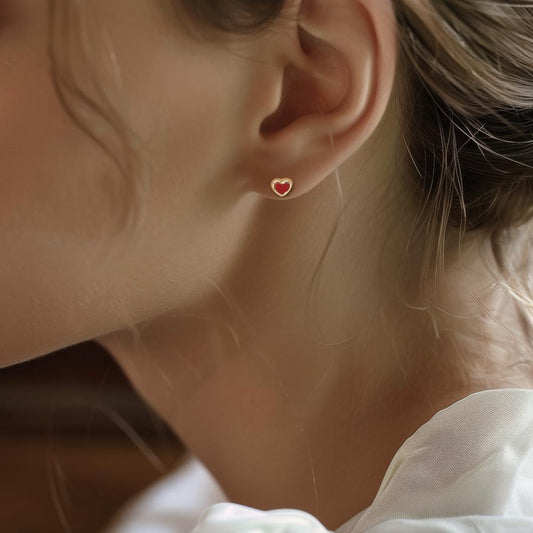 Orecchini a bottone Oro giallo 585/14 kt [synth. Stein] rosso, 2 pietra Cuore Ø4.5 mm