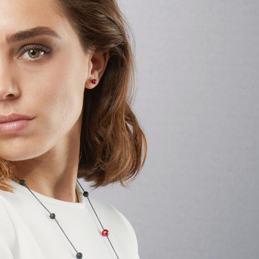 Orecchini a bottone Oro giallo 750/18 carati Rubino