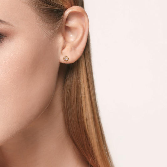 Orecchini a bottone Argento Pietra di luna 2 pietra giallo dorato Ø4 mm