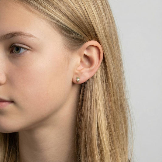 Orecchini a bottone Argento Zirconia giallo dorato Gufo