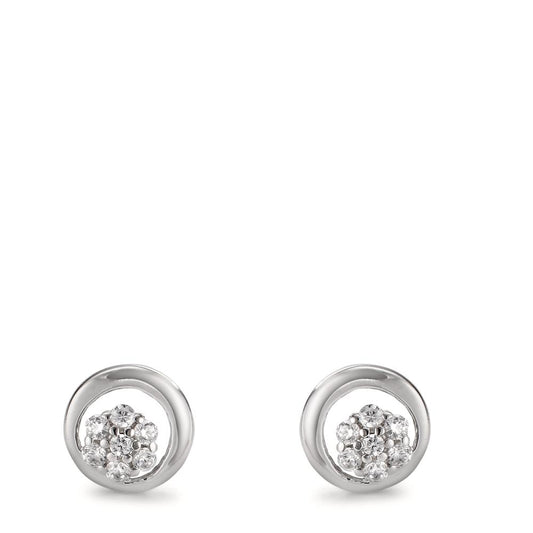Orecchini a bottone Argento Zirconia rodiato Fiore Ø9.5 mm
