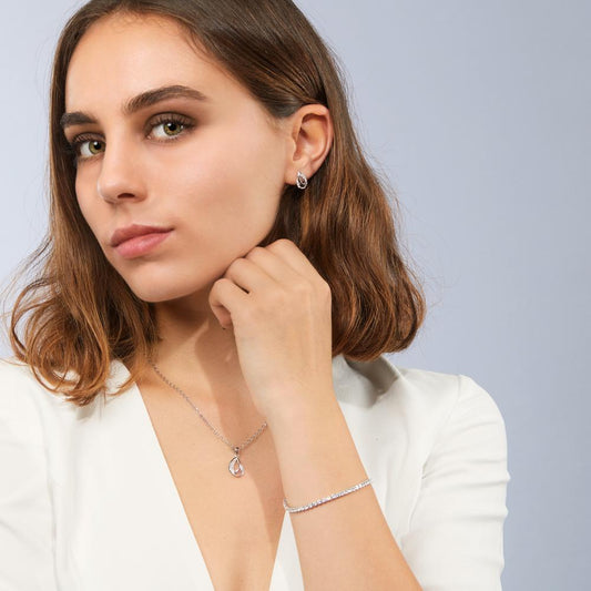 Orecchini a bottone Argento Zirconia rodiato Fenicottero