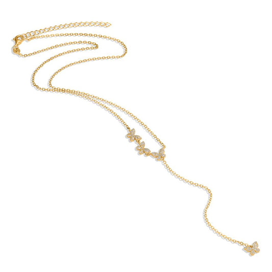 Collana Argento Zirconia giallo dorato Farfalla 40-45 cm