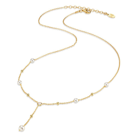 Collana Argento Zirconia giallo dorato [shining Pearls], 5 Perla 4-5 mm 41-45 cm