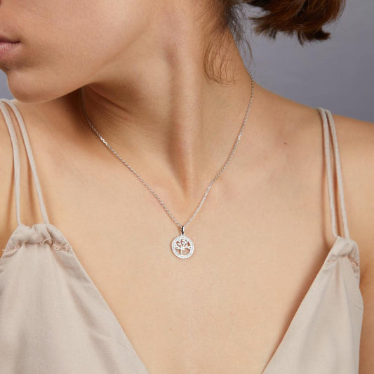 Ciondolo Argento Zirconia rodiato Albero della vita Ø15 mm