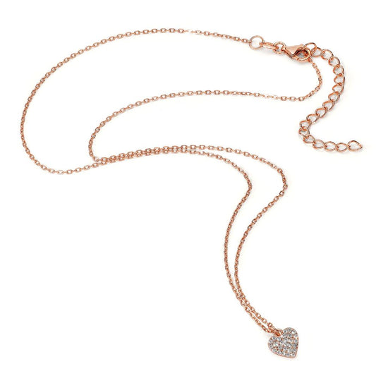 Collana Argento Zirconia rosa dorato Cuore 39-44 cm
