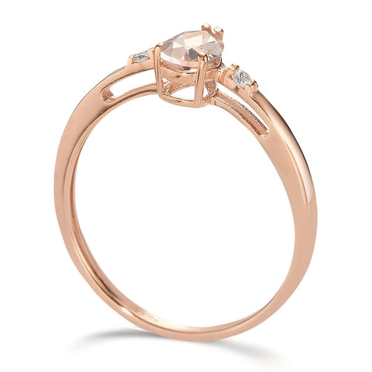 Anello Oro rosso 750/18 carati Morganite 0.45 ct, 3 pietra, Diamante 0.032 ct, 2 pietra, w-si
