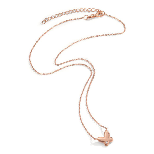 Collana Argento Zirconia rosa dorato Farfalla 40-45 cm Ø10 mm
