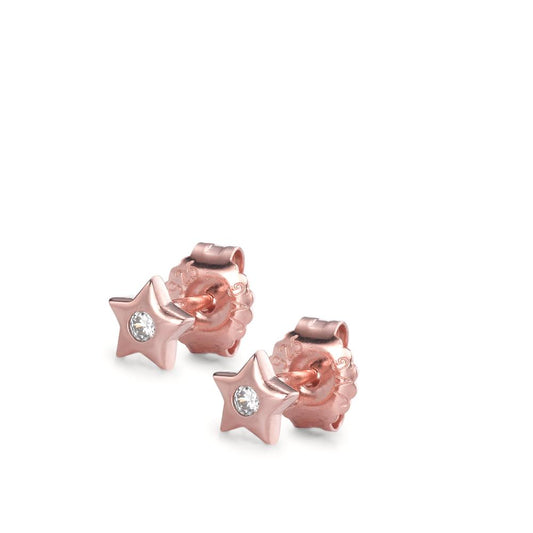 Orecchini a bottone Argento Zirconia rosa dorato Stella Ø5 mm