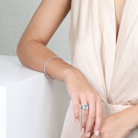 Anello Oro bianco 750/18 carati Topazio, Diamante 0.15 ct, 30 pietra, [Brillant], w-si