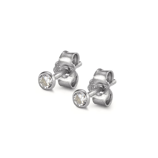 Orecchini a bottone Argento Zirconia rodiato Ø3 mm