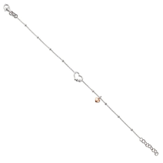 Bracciale Argento rosa bicolore Cuore 17-19 cm