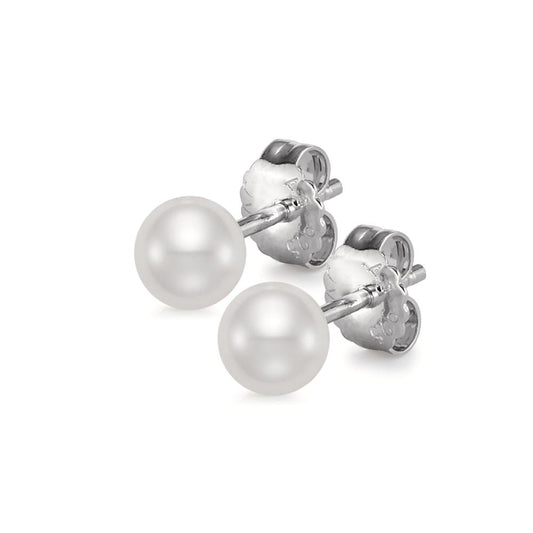 Orecchini a bottone Argento rodiato Perla coltivata d'acqua dolce bianco, 2 Perla 5-5.5 mm