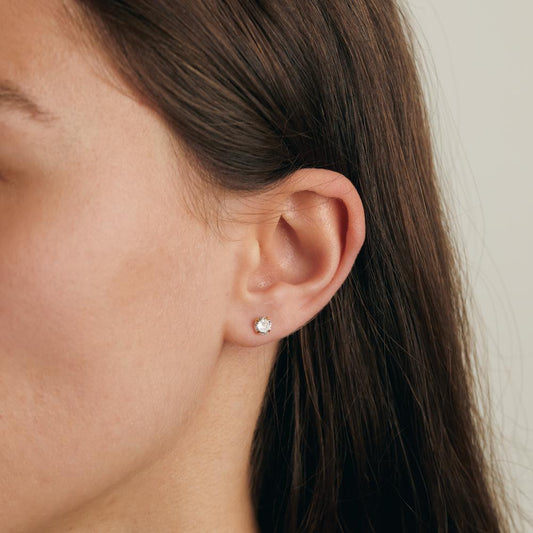 Orecchini a bottone Argento Zirconia giallo dorato Ø5 mm