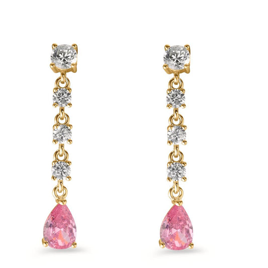 Orecchini Argento Zirconia rosa, 10 pietra rosa dorato