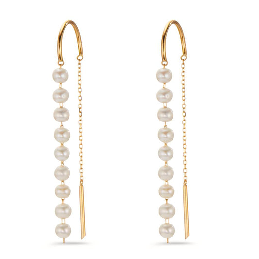Orecchini a strappo Oro giallo 750/18 carati Perla coltivata d'acqua dolce bianco, 18 Perla, 3.5 mm