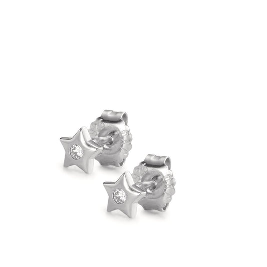 Orecchini a bottone Argento Zirconia rodiato Ø5 mm