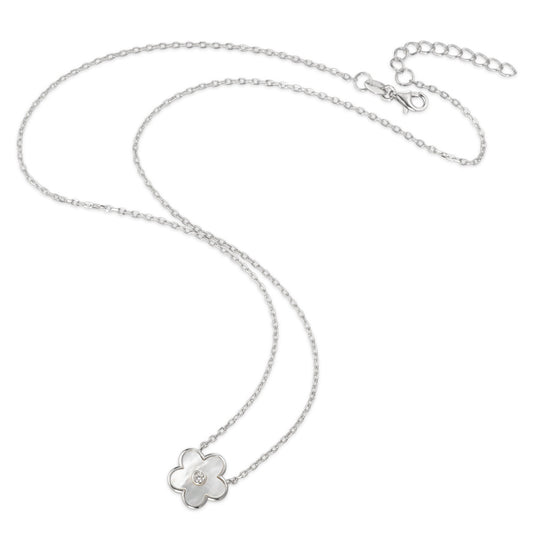 Collana Argento Zirconia rodiato Madreperla bianco Fiore 41-44 cm Ø11 mm