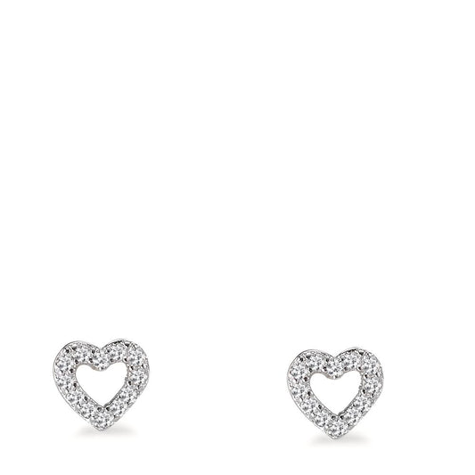 Orecchini a bottone Argento Zirconia rodiato Cuore Ø6 mm