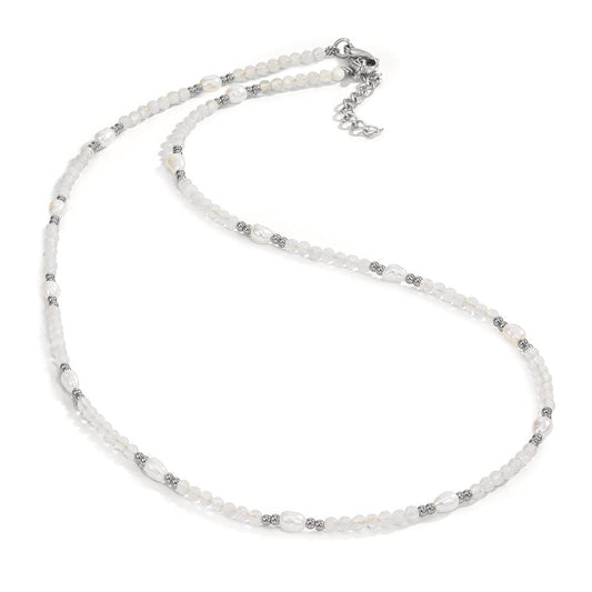 Collana Acciaio inossidabile Pietra di luna bianco, 2.5 mm Perla coltivata d'acqua dolce, 14 Perla, 3 mm 42-45 cm