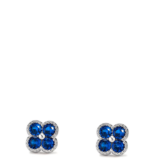 Orecchini a bottone Argento Zirconia blu zaffiro, 8 pietra rodiato Fiore Ø7.5 mm