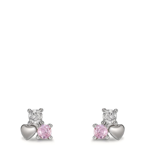 Orecchini a bottone Argento Zirconia 4 pietra rodiato Cuore