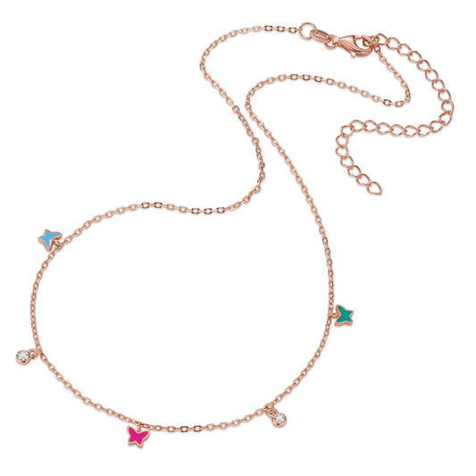 Collana Argento Zirconia rosa dorato Farfalla 40-45 cm