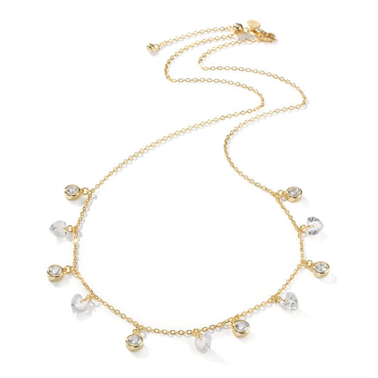 Collana Argento Zirconia 11 pietra rosa dorato Cuore 42-50 cm