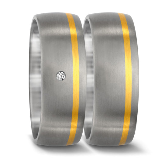 Anello del partner Titanio, Oro giallo 750/18 carati Diamante 0.02 ct, w-si