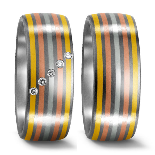 Anello del partner Titanio, Oro giallo 750/18 carati, Oro rosso 750/18 carati Diamante 0.04 ct, 4 pietra, w-si